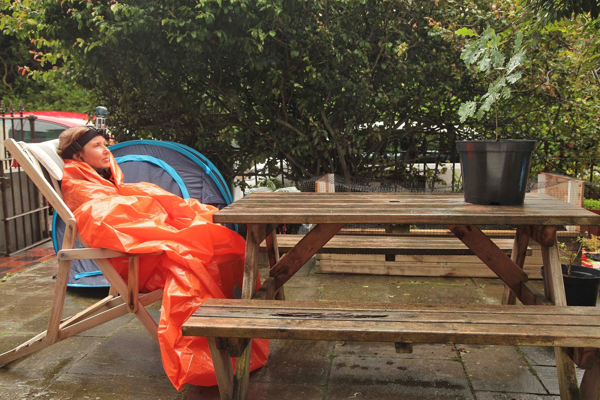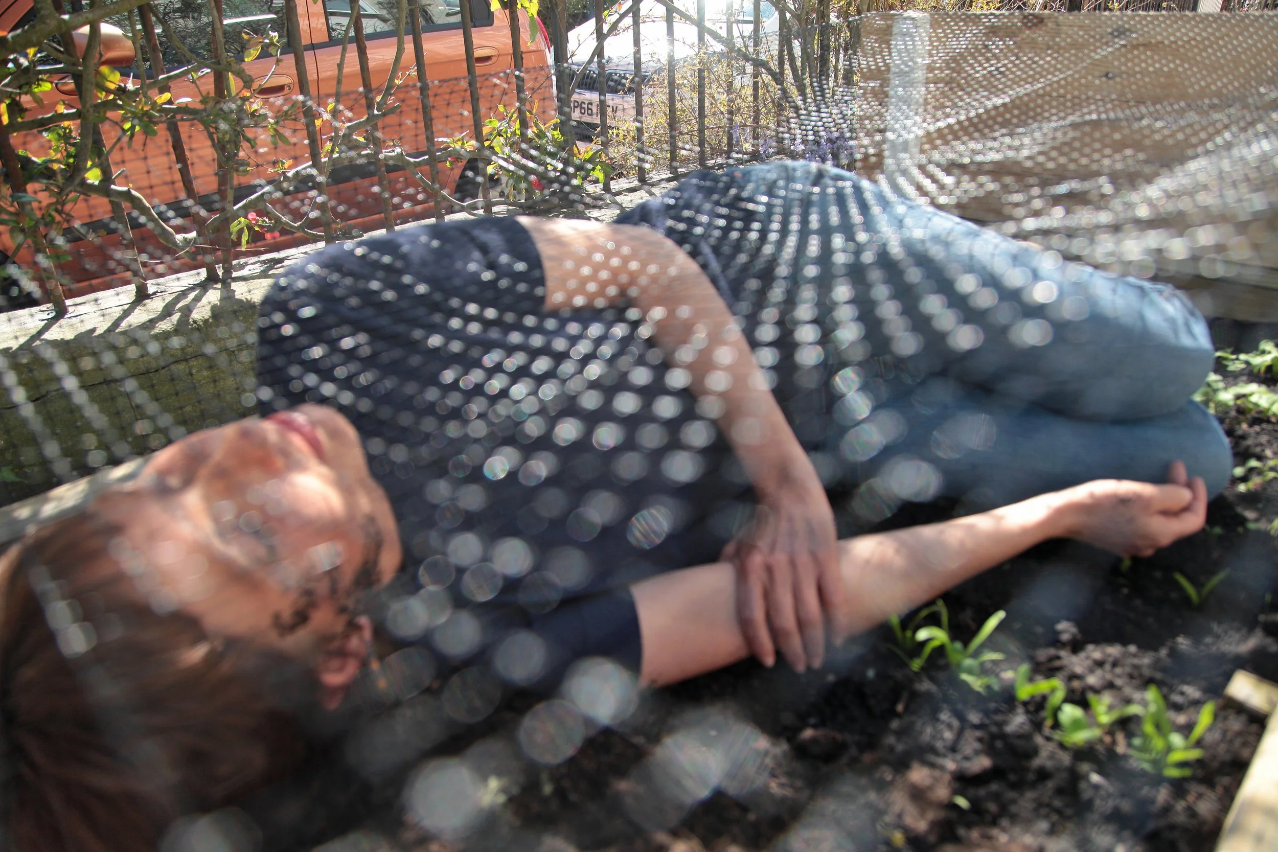 Miranda Whall working on her 24 hour live-stream performance, Soil Voices, in 2022