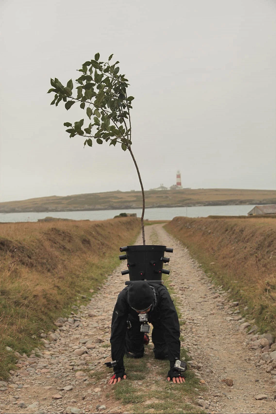 If I feel scared and I am making myself laugh then I will follow the hunch and make the work, if these two components are present then I am reassured the idea is worth pursuing and the work is worth making. In my practice the ingredients for a successful project are: humour, beauty, fear, suffering and potential madness. When I start my projects, I always find myself saying aloud “who’s bright idea was this” followed by a wave of despair followed by sheer dogged determination. I absolutely hate putting on the GoPro cameras and carrying heavy trees on my back especially if it’s hot, wet, and windy and if people hurl abuse at me, but I guess I feel I must suffer for my art, and I must suffer from amnesia because I find myself doing these uncomfortable and unpleasant things again!