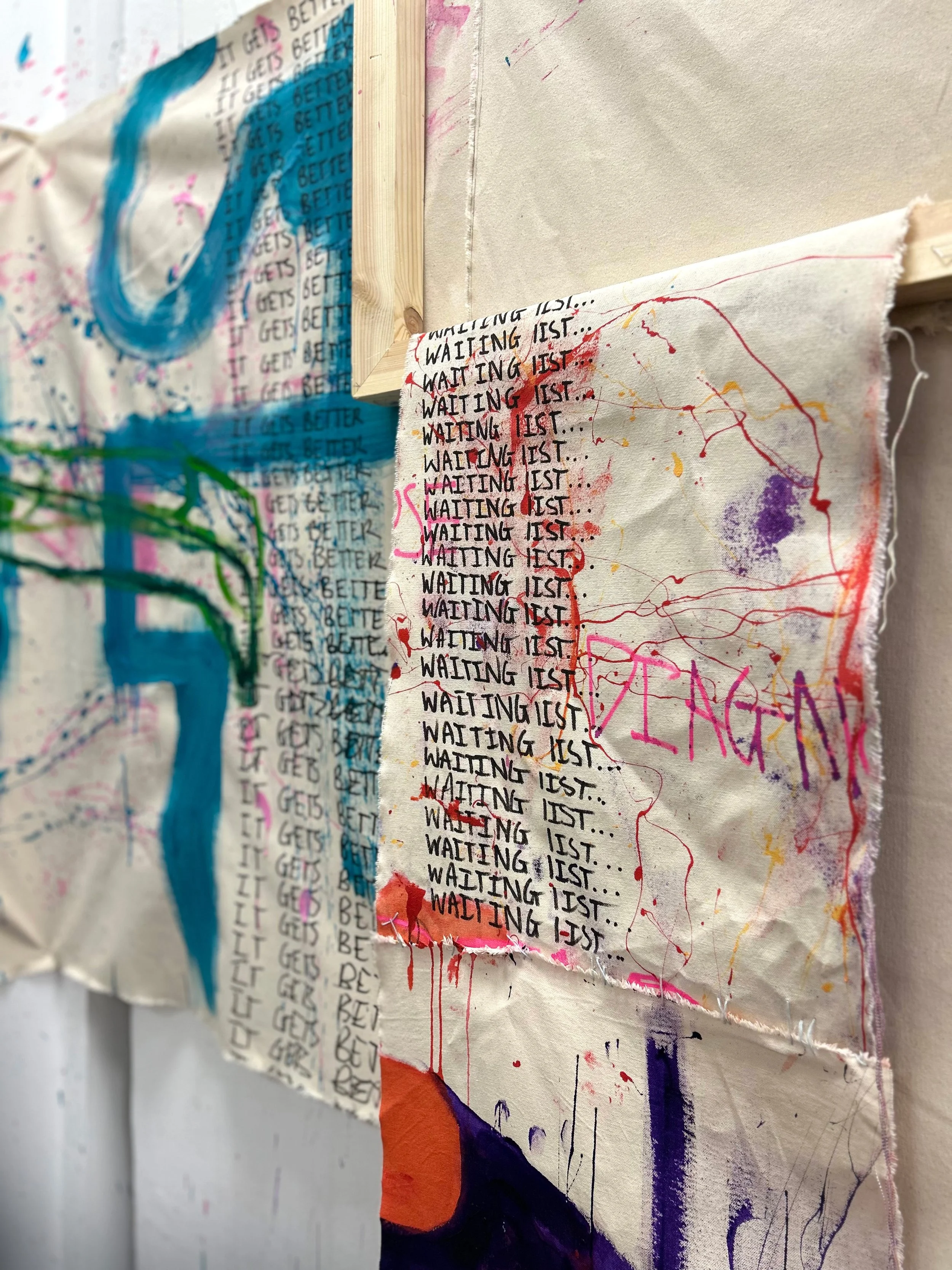 Naomi Fahy’s work focuses on her continuous navigation of neuro-divergency as she attempts to understand more about herself and her art. Using a multi-media approach, she creates quasi-installations where space and texture interact with traditional painting techniques to depict expressions of a neuro-atypical mind. This therapeutic approach allows her to explore the necessity of balancing the positives and negatives of her experiences and create a work that is indicative of her constant battle for equilibrium.