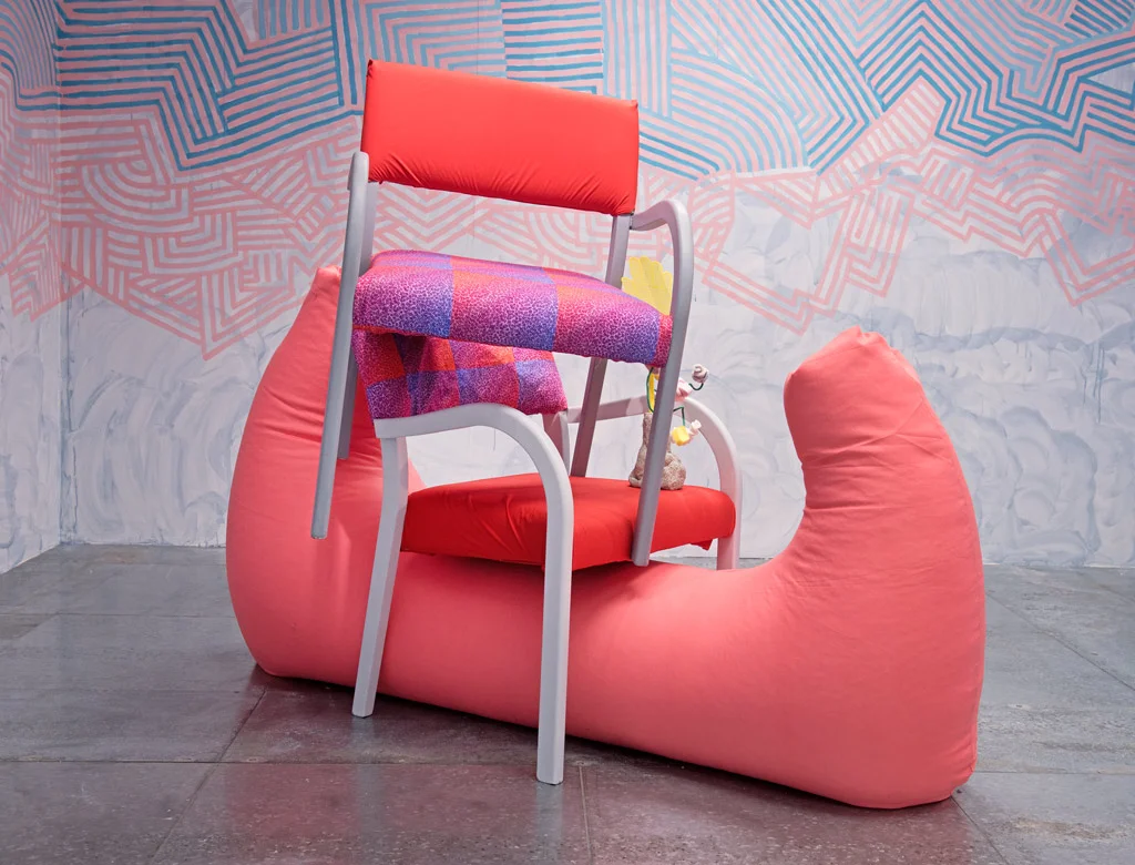 The installation they have created references both the physical space of the waiting room and the often anxious sensation of waiting. A world away from the neutral colours and decor we associate with institutional waiting rooms, Puotinen and Epstein have instead created a visually dynamic space, where the familiar is rendered unfamiliar. A space where the organic is synthetic, where innocuous patterns are in fact drawn from the security industry, and where a nostalgic feel-good poster has been updated for this era. As the title implies, the artists aim to expose and highlight this act of waiting, a sense that this time of collectively held breath thrust upon us by forces outside of our control doesn’t have to be borne in isolation. Puotinen and Epstein implore the viewer: hold tight to yourself, hold tight to your beliefs and hold tight to each other.