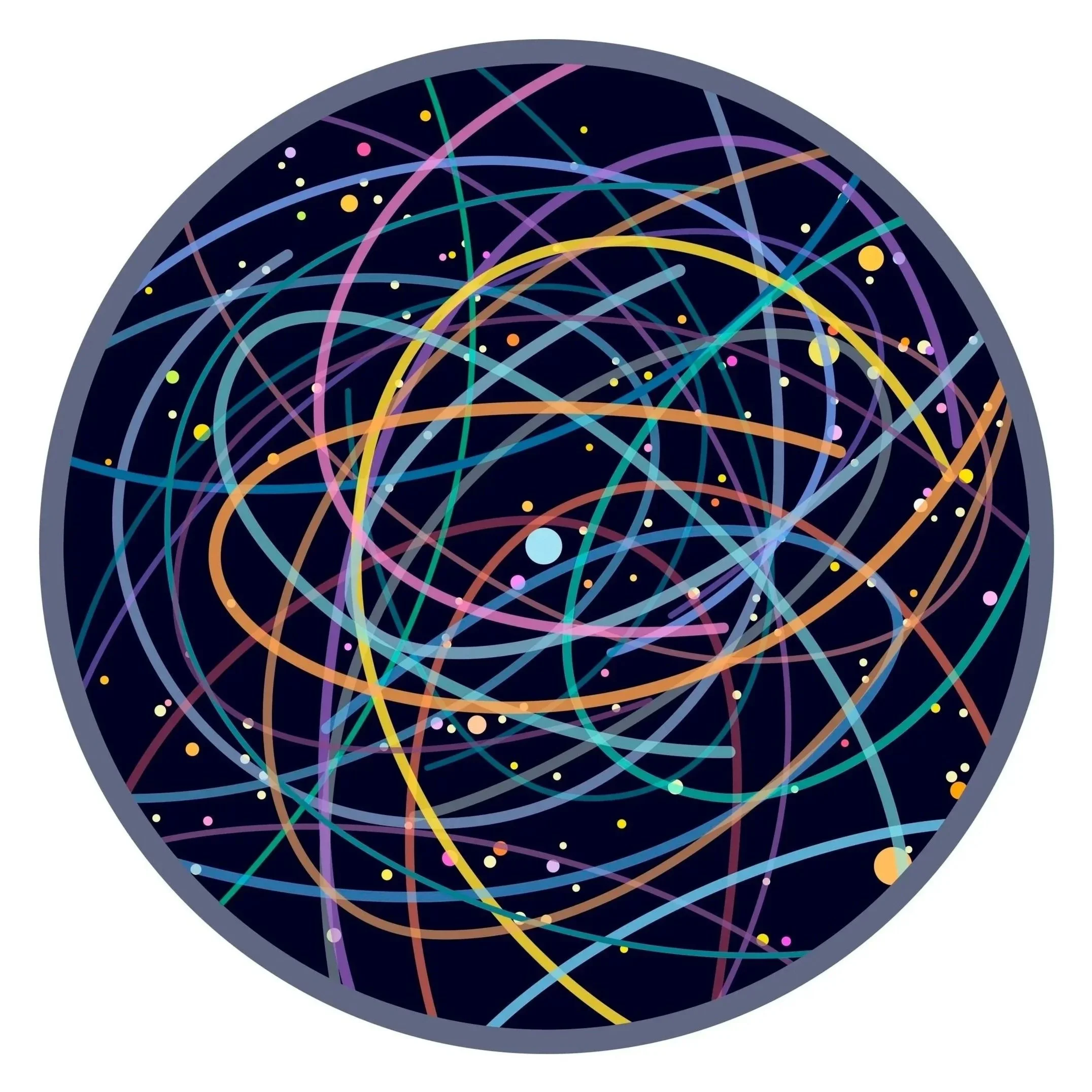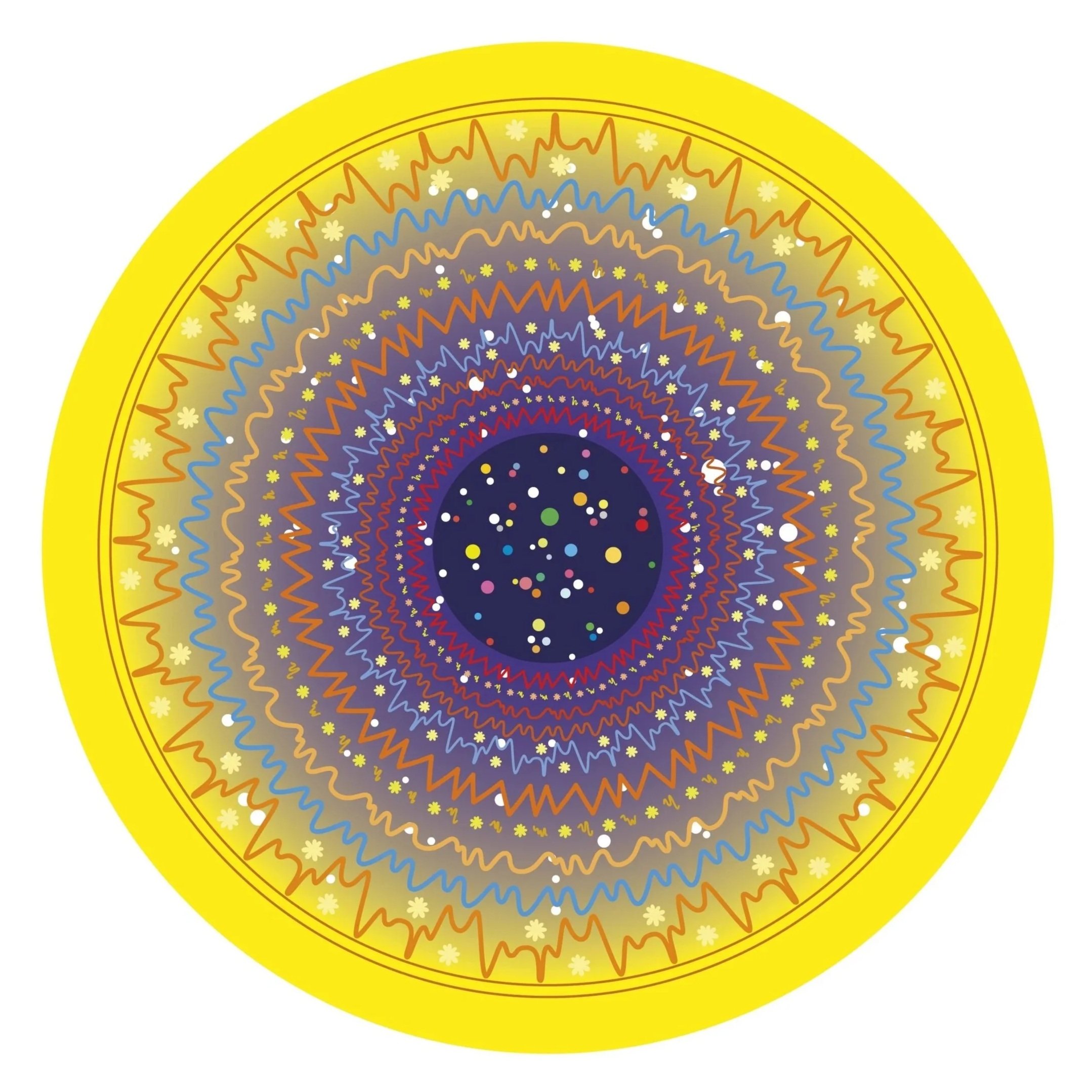 Mike Collier in collaboration with Tom Jordan and Geoff Sample, The Sound of a Mountain Stream Under a Clear Night Sky, from the suite Seeds to Stars, 2025, digital print on 300gsm acid free fine art paper, handmade circular frame, 50cm diameter