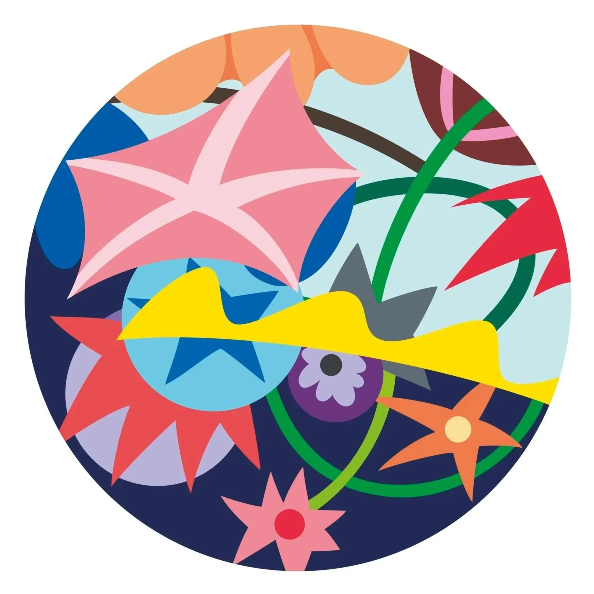 Mike Collier in collaboration with Tom Jordan, Memories of Sado Island Flora, 2026, Perspex and HDF, 80cm diameter
