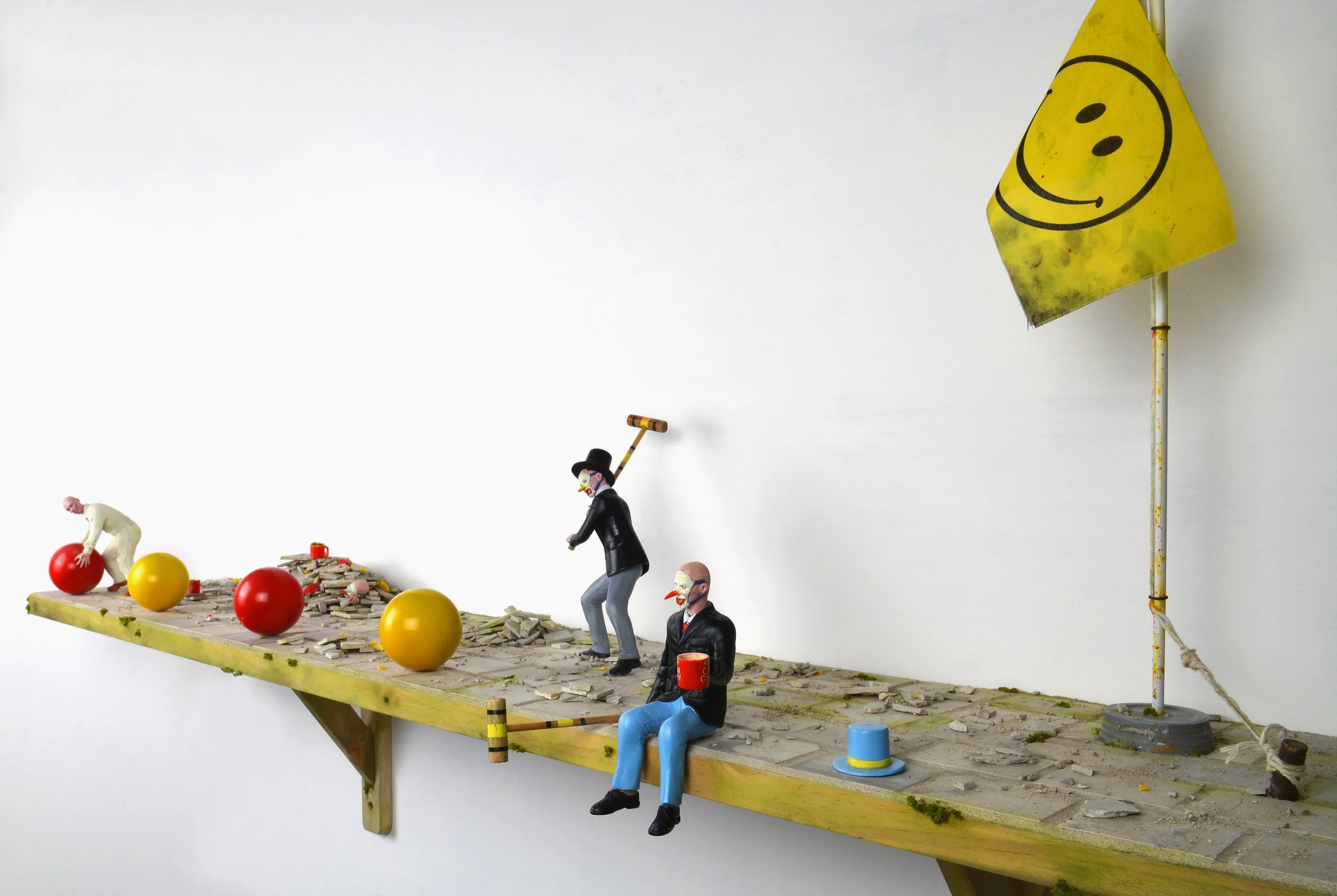 Peter Hanmer, Keep Your Distance, 2021, mixed media diorama, 60x118x23cm