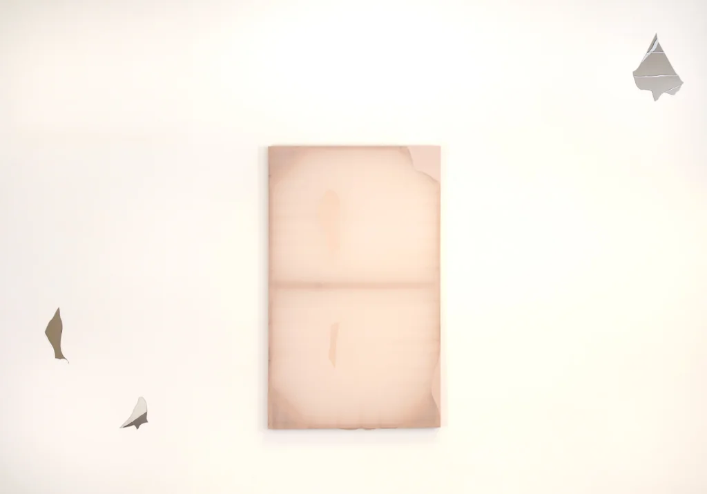 Oliver Doe’s paintings question queer visibility in visual culture, employing opaque gloss paint over translucent, skin-like nylon grounds. Abstracting figures into confused, amorphous and sometimes invisible bodily forms, Doe critiques formalist hard-edge painting through an inquisitive queer lens. These are well complemented by Singaporean artist Daniel Chong’s intimate mirrored sculptures, Safe Spaces, which critique his country’s criminalisation of homosexuality. These laser-cut works present the abstracted spaces between embracing figures, removing the bodies and their associations from sight, whilst reflecting the figure of the viewer within.